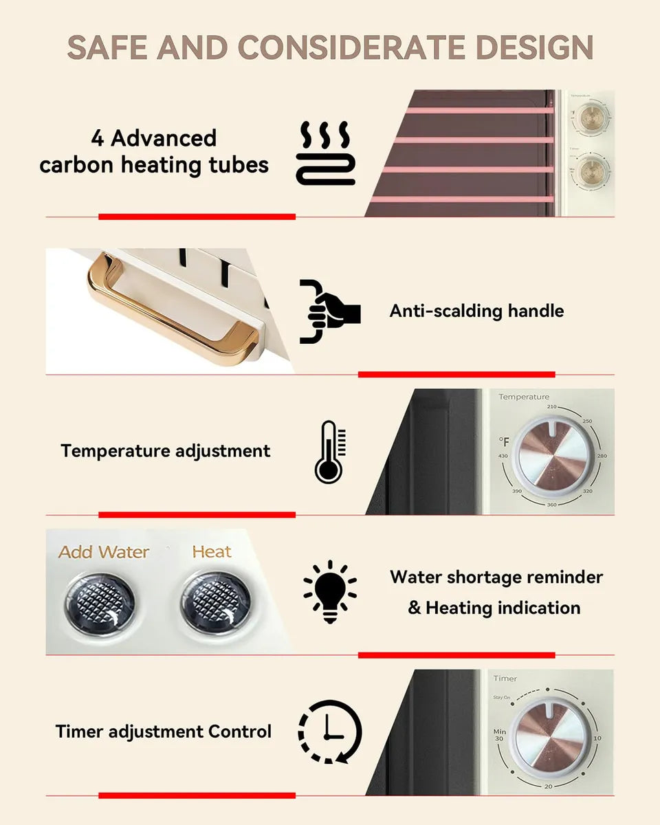 fácil de usar: ligar, ajustar espeto, colocar alimentos;